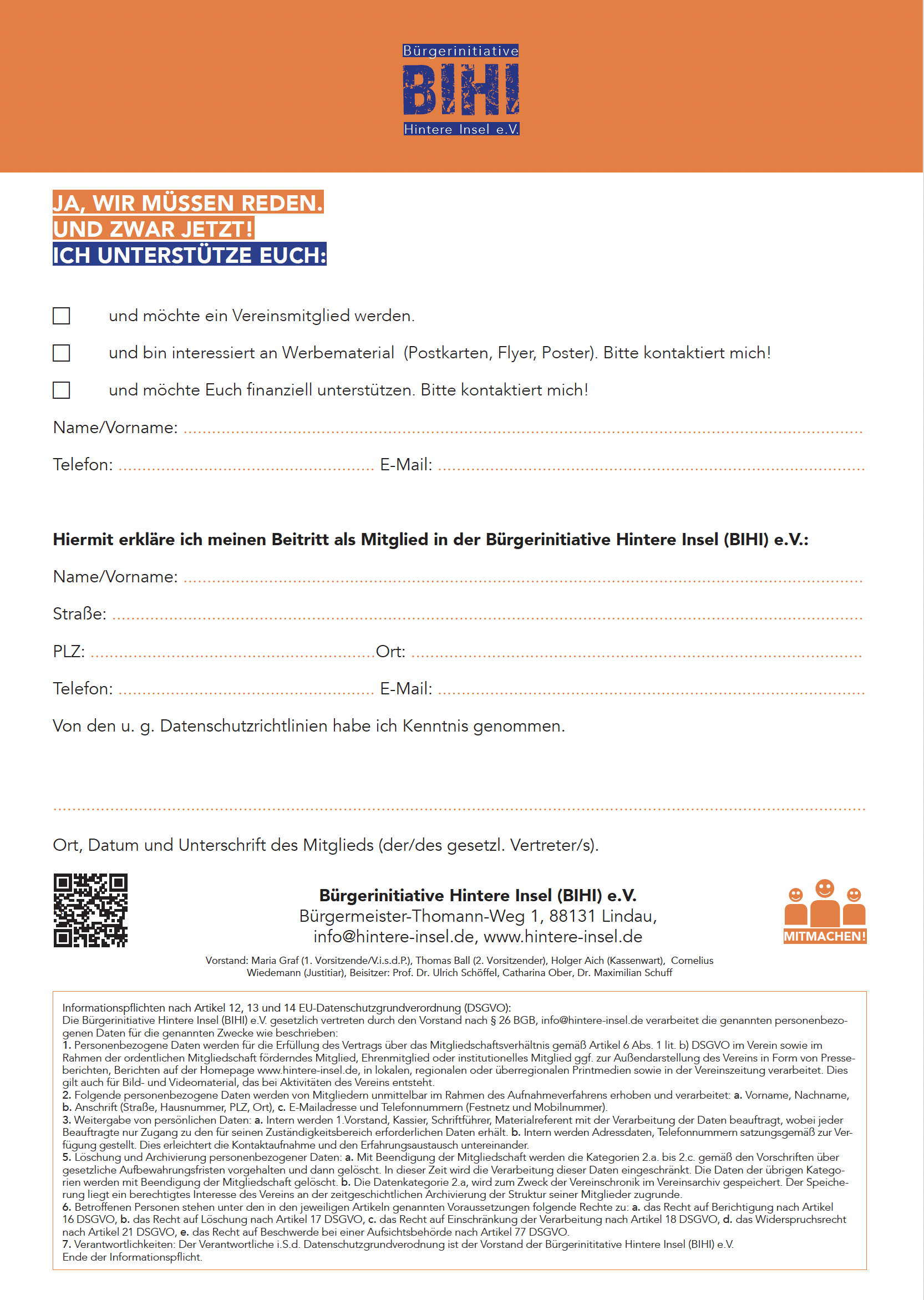 Ihre Stimme zählt! Mitglied werden bei der Bürgerinitiative BIHI - ohne Verpflichtungen. Einfach, schnell und unkompliziert anmelden: